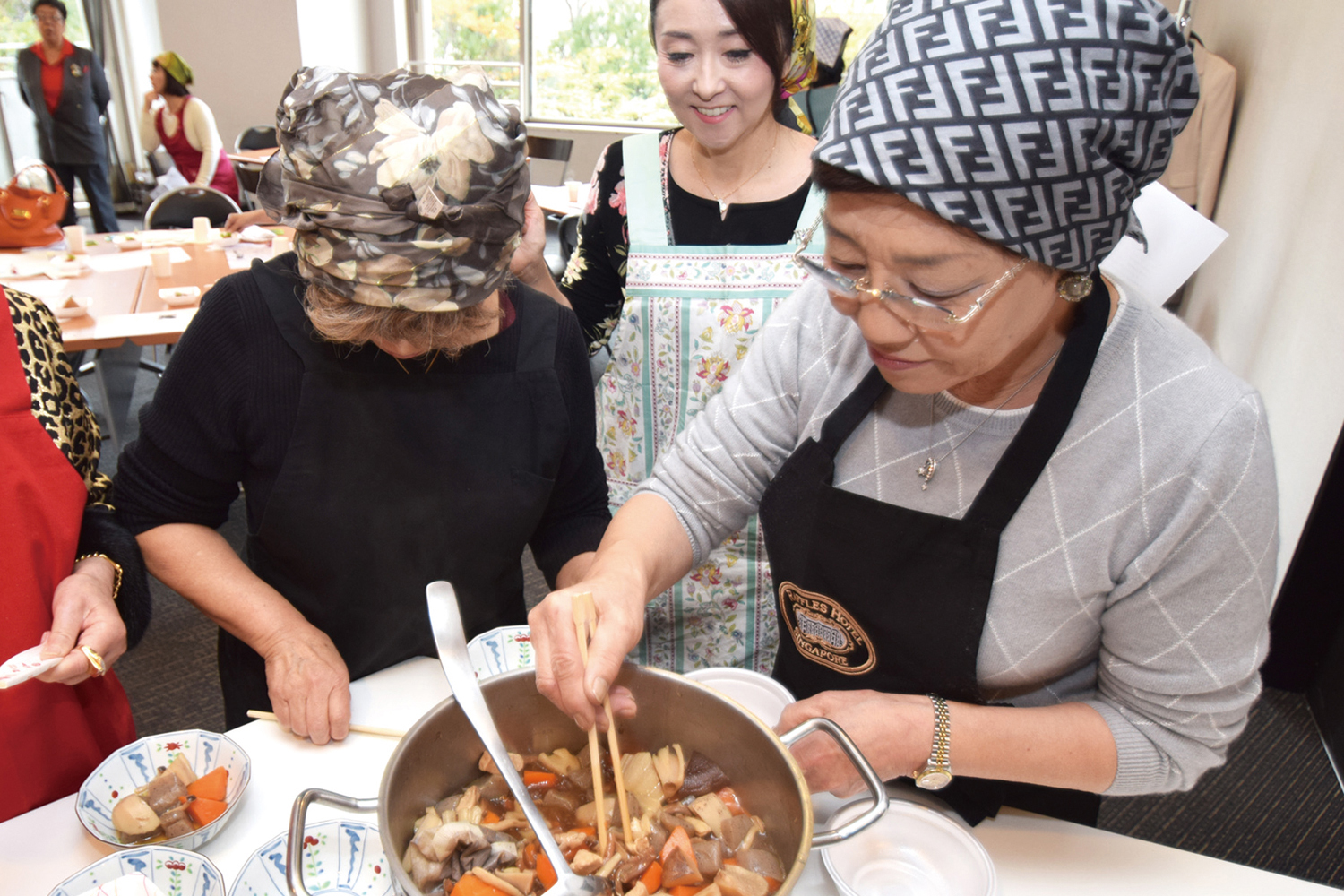今年度、八複合地区女性及び家族チーム(FWT)は合同で、郷土料理を生かした糖尿病食研究の活動に取り組んでいる。グローバル奉仕フレームワークの一つである糖尿病に関するアクティビティで、各複合地区及び地区のFWTが糖尿病食のメニューを開発。11月26日、公式訪問のため来日中のグドラン・イングバドター国際第1副会長はこの活動を視察し、333複合地区の糖尿病食メニュー、田舎風かも汁つけそば、魚沼産ぜんまいと根野菜の煮しめなどを試食。