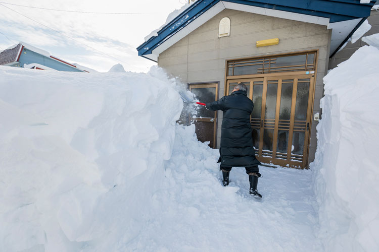 2018年2月3日、そんな深川市の鷹泊地区に深川ライオンズクラブ(笹渕哲央会長/24人)の面々が集まっていた。目的はこの地域の独居高齢者宅の雪下ろし。玄関部分や、道路に出るまでの通路は除雪がされているが、家の1階部分はすっぽり雪に覆われてしまっている。