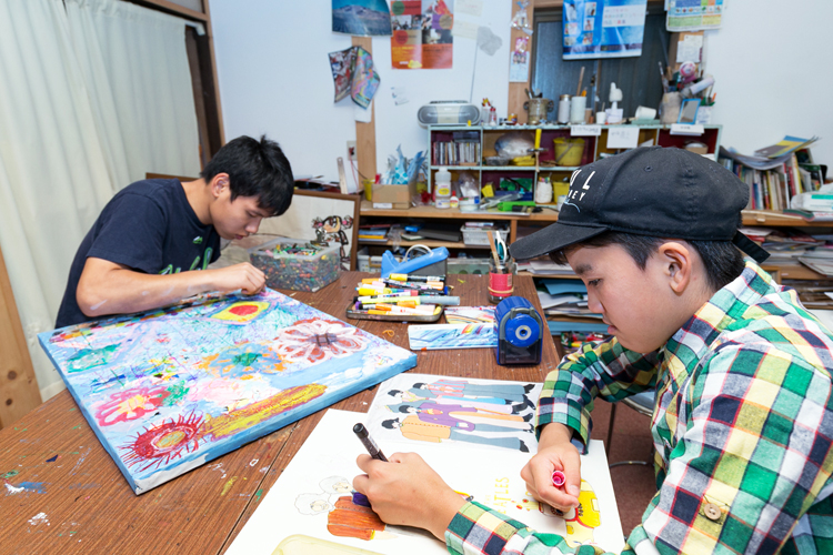 八幡学園の造形教室は現在も受け継がれており、週3日、画家の松田拓実氏が専任講師となって放課後などに実施されている。また、最近では地域に開かれた造形教室として、入園児童だけではなく、在宅の子どもたちを対象とした教室も行っており、ハート♡アート展にも、入園児と地域の子どもたちの両方の作品が展示されていた。山下清のような貼り絵の作品もあれば、子どもたちの感性や興味を優先した作品も多く、「踏むな 育てよ 水そそげ」の精神が、今も息づいていることをうかがわせた。
