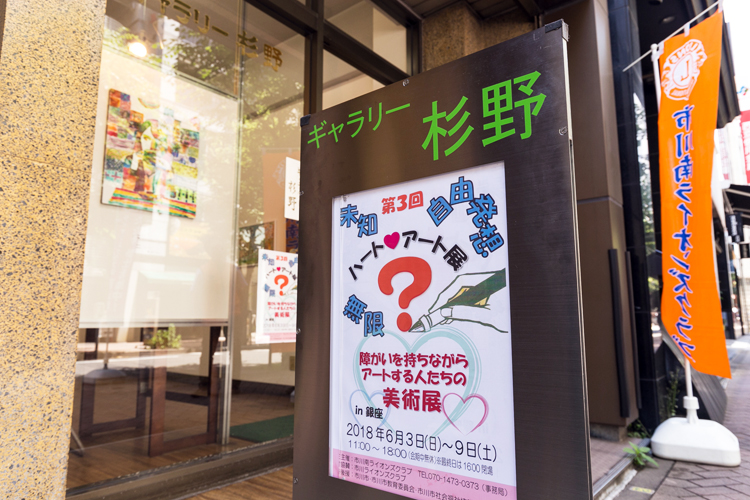 市内の関連施設や学校に呼び掛けたところ、初年度は181点の応募があり、その全作品を市川市文化会館で3日間にわたり展示。また、その中から来場者の人気を集めた作品を銀座のギャラリーに展示することにした。ギャラリー杉野がある並木通りは、老舗から海外の高級ブランド・ショップまでが建ち並び、銀座の奥深さを感じさせるストリート。そんな場所に展示することで、出品者にはプレミアム感を持たせ、画廊を訪れた人たちには障がいを持つ人たちの多才な力や可能性を再認識してもらうきっかけとした。