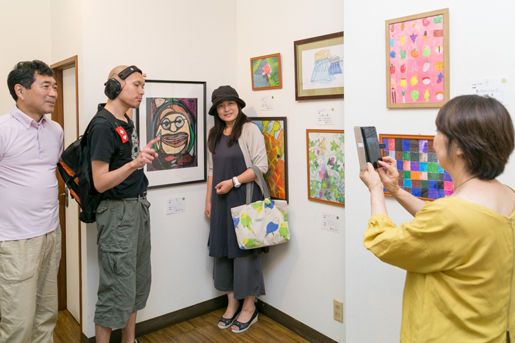 今回、銀座のギャラリーにやって来たのは全部で34点。当初の構想通り、障がいの枠を超えた作品が展示され、見る人の心を刺激し、思わず見入ってしまうような作風の絵が数多く見られた。こうした「ハート♡アート展」の特徴は、障がいのあるなしや障がいの違いにかかわらず、多くの人が感じるものらしい。