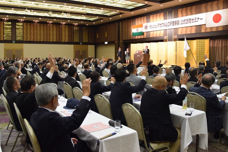 日本についてはLCIFを支える背骨のような存在だとしてその貢献に謝意を表した一方で、寄付総額、寄付者数、リーダーによる寄付額で日本は世界一だが、クラブ単位の寄付や企業による寄付、リードギフト(10万ドル以上の寄付者)についてはまだ改善の余地があると述べた。アガワル理事長は今年度の目標は週に1.5ドルを寄付することだとし、セミナーに出席した各地区のリーダーに対して、全会員が日本円にして週200円の寄付を達成してほしいと努力を求めた。また、日本の山田實紘元国際会長が国際委員長を務め、3億ドルを目標に今年度から3年間にわたって行われるキャンペーン100(ワンハンドレッド)についても、全ての会員が協力して目標を達成させようと訴えた。
