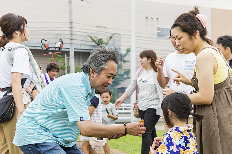 メンバーのその言葉に偽りはない。呼び止められた人は皆「おいしい」と顔を輝かせる。お客さんが食べている間にメンバーはライオンズクラブが実施していること、収益は全て災害支援に充てていることを語る。特に今回は西日本豪雨災害に対しての関心が高かったこともあり、「じゃあ一つください」と列に並ぶ人が多かった。