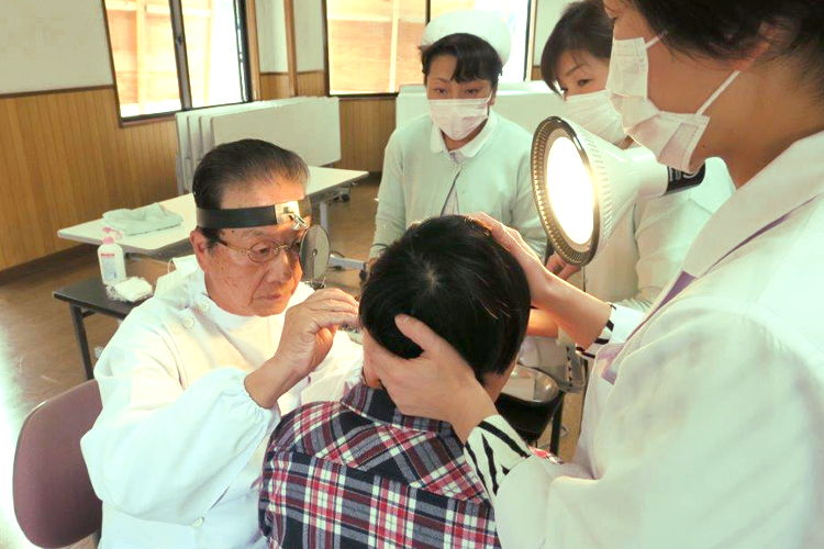 高山岊城(せつじょう)ライオンズクラブが障害者支援施設の高山山ゆり園で耳鼻咽喉科無料検診を始めたのは、私が入会して2年目のことで、今から42年前になります。高山で開業する前、赤十字病院に勤務をしていた頃に、時々ボランティアで山ゆり園などの施設で検診をやっていたので、その年に社会福祉委員会に入ったのを機にクラブに無料検診を提案したんです。それからは毎年、3月3日の耳の日に合わせて検診を行い、毎回入所者60人から70人ぐらいを診ています。