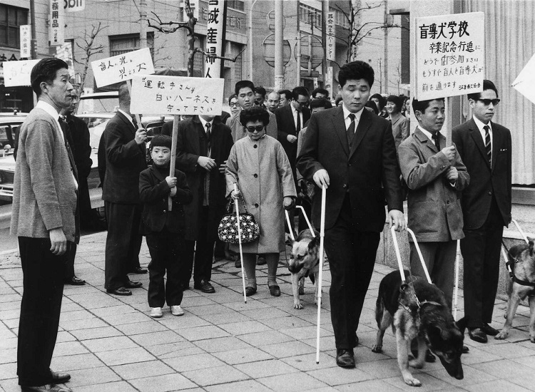 日本における盲導犬事業は、欧米から約半世紀遅れてスタートした。当時、盲導犬事業で世界をリードしていたのはドイツで、1916年、第一次世界大戦により失明軍人が急増する中、盲導犬学校を設立。同国が誇る作業犬ジャーマン・シェパードを訓練した。日本にも1939年にドイツから4頭の盲導犬が導入され、失明した兵士の社会復帰のために活用されたが、残念ながら戦後の混乱の中、事業として育つことなく消滅してしまった。