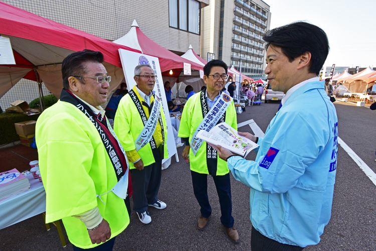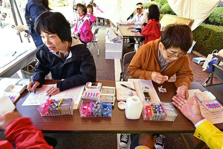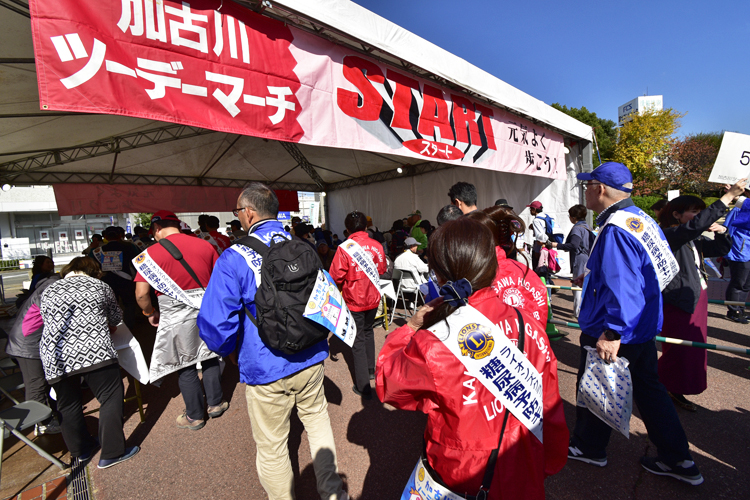 ライオンズクラブではもともと、地元の加古川中央ライオンズクラブ(上田豊之会長/87人)と、加古川清流ライオンズクラブ(冨田万理子会長/23人)が大会に協力。加古川中央ライオンズクラブは朝6時から始まる参加受付業務を担当し、加古川清流ライオンズクラブは会場内にブースを設け豚汁やおでんの提供を行う。今年も両クラブ会員たちは早朝からそれぞれの担当箇所で準備を開始し、大会のサポートに当たった。