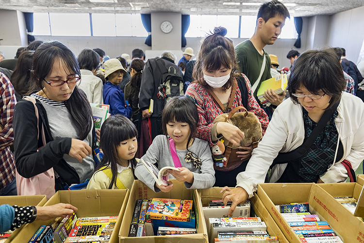 来場者から大好評のブックフェア。「昔から欲しかった本がここで偶然見つかった」といったうれしい反響もある。亡くなったおじいさんの本を「皆さんの役に立つなら」と寄贈してくれたおばあさんもいた。さまざまな人の思いの上でリサイクルブックフェアが開かれている。若者の活字離れが叫ばれて久しいが、ブックフェアには子どもたちも多く訪れている。絵本や児童書は子どもの成長によって不要になることも多い。これらのリサイクルとしても良い機会となっている。