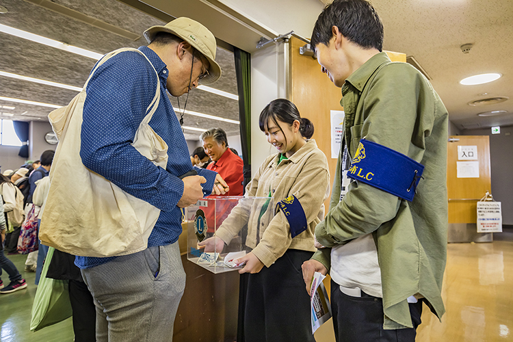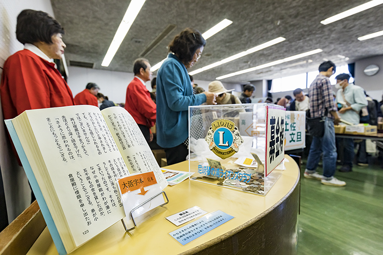 メンバーは募金の案内をしながら、足りなくなったところに本を補充していく。本好きが集まるだけあって、みるみる本が無くなっていく。残念ながら募金に協力してくれない人もいるが、中には子どもにお金を持たせて募金させる家族連れも見受けられた。募金箱の隣にある大活字本のサンプルに目を留めてメンバーに話し掛ける人もいるなど、啓発活動としても効果のある事業となっている。