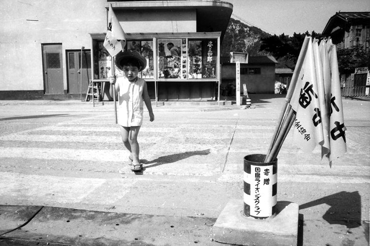 1966年6月、贈呈式では信号機のチャイム音を聞きながら喜々として横断歩道を渡る生徒たちがいた。