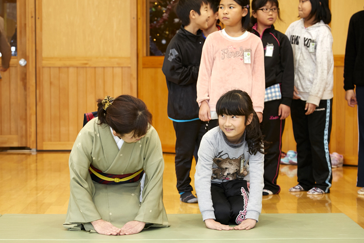 言われた通りにやってみるが、どうも動きがぎこちない。そんな一連の動作を、周りの子どもたちは緊張の面持ちでじっくり眺めている。自分の番が来た時にうまく出来るよう、しっかり友達の所作を観察しているのだ。