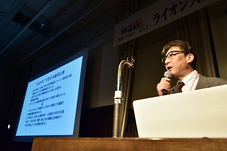 「西日本豪雨で大きな被害を受けた岡山の出身で、100歳を超えてなお現役として活躍した彫刻界の巨匠・平櫛田中(ひらくしでんちゅう)に『今やらずしていつできる。わしがやらねばだれがやる』という名言があります。人間は思ったらすぐに実行しなくてはいけない。そして自分がやる覚悟を持つこと。更に前段では『実践実践また実践』『やらずに出来るわけがない』とも言っています。これは我々ライオンズのアラートにおいても同じです。今日のフォーラムが実践に結びつくきっかけとなることを望みます」