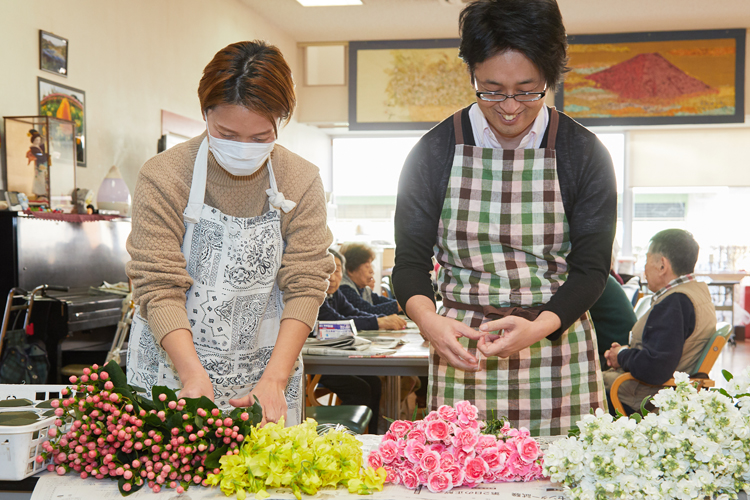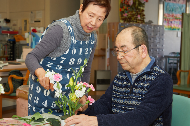 「デイサービス施設では、歌を歌ったり体操をしたりと、毎日いろいろな行事やレクリエーション活動が行われています。そういう活動とかぶらず、なおかつ自分たちに何が出来るかを考えた時に、『お花』がよいだろうということになりました」