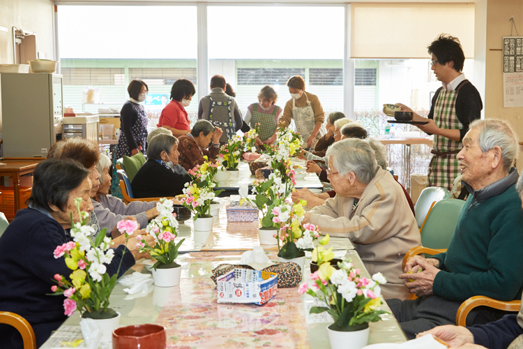 和やかに過ごした時間が終わる間際、利用者の一人から「いつまでも長生きして、お花を生け続けたい」という声が上がった。そんな思いは、この日この場に来たくても来られなかった利用者の方にもきっとあるはず。こうした声を受け、クラブはこの活動を毎月1回のペースに戻すことを目下の目標としている。