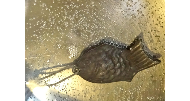 今回は更に、カンボジアの人を貧血から守る「鉄の魚」500個も贈呈した。3年間の小学校寄贈事業の傍らカンボジア人の健康状態などにも注視していたところ、44%もの人が貧血に苦しんでいることが分かった。特に妊産婦への影響は深刻で、早産、流産、死産の原因にもなっている。鉄の魚はこぶしの中に収まるくらいの小さな魚の形をした鉄で、食材と一緒に鍋に入れて10分間煮るだけで、1日の鉄摂取量の75%(60~300㎎)が放出され食品や水分に混ざる。これによりヘモグロビンが増え、血液中に酸素がたくさん運ばれて、貧血の改善が図られるのだ。