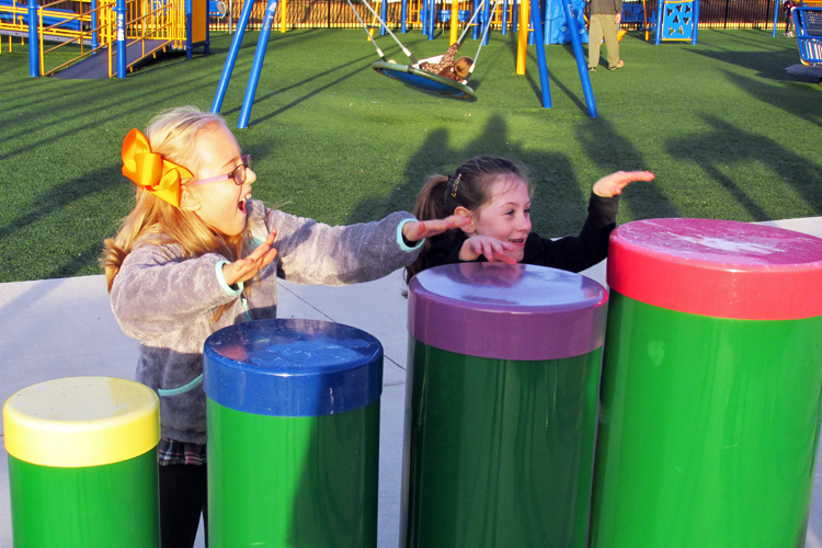 公園には音階を奏でて楽しむ遊具など、新しく開発されたさまざまな遊具を設置。地面は高低差を無くして柔らかい人口芝を敷き、子どもたちが歩いたり走ったりしやすく、転んでも安全なように配慮されている。5歳のナタリー・バーハムも、ここでは好きなように遊び回る。ナタリーの母、エイミーは言う。