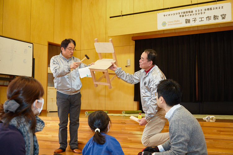 1月31日、その町立幼稚園及び保育所で平泉ライオンズクラブ(菅原弘会長/48人)が親子工作教室を開催した。今回で4回目となる事業だ。対象は今年卒園する園児とその親。今年卒園するのは幼稚園が15人、保育所が25人の計40人だ。教室は幼稚園と保育所でそれぞれ実施され、親子で協力して椅子を作る。出来上がった椅子は3月の卒園式で使用し、その後は自宅へ持ち帰ってもらう。