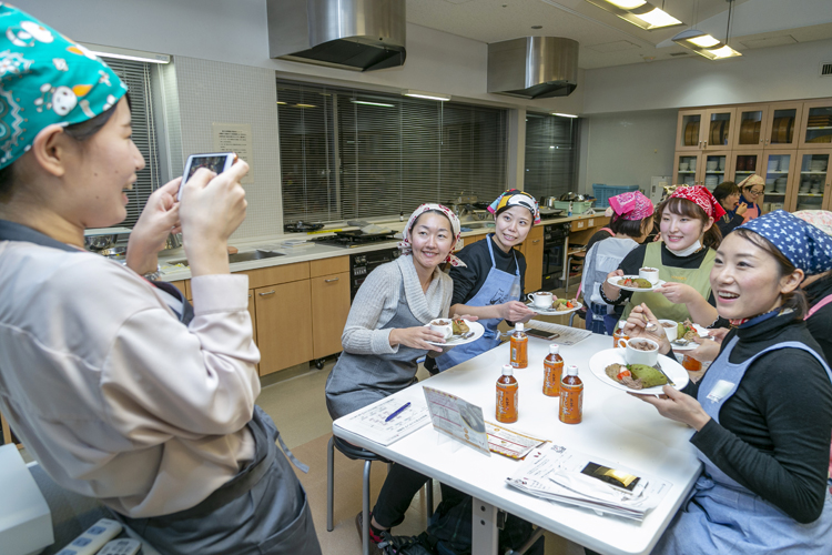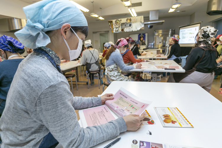 今年で7回目となった献血女子会クッキングは1月19日、千葉市生涯学習センターの食文化研修室で開催された。参加者の募集は日赤千葉県支部のウェブサイト上での告知や、複数回献血クラブの登録者へEメールで案内する方法で行っている。そのため、参加者には普段から献血に協力している人が多かったが、会の趣旨を知って、貧血に悩む友人を誘って参加したという人も複数いた。会場の収容人数の制限により、今回の募集定員は20人。参加者には食材費と保険料を含む参加費として1人500円を負担してもらった。