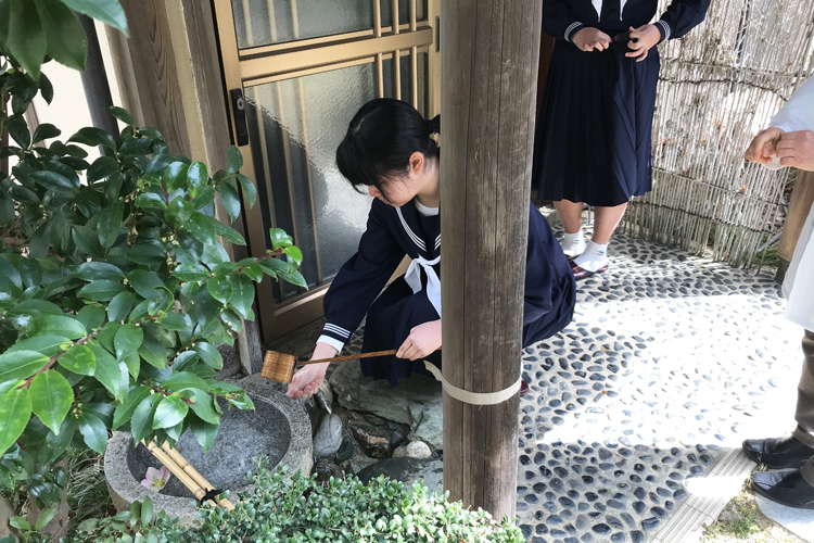 生徒たちは生まれて初めて指導を受けた基本動作を、一生懸命に習っていた。正式なお辞儀の方法を教えていない家庭も多いので、この機会に社会人としての常識をしっかり身に着けてもらえば、大きな財産になると思う。全員、抹茶を飲むのも初めてだったが、意外と苦くなくて美味しいと評判が良かったのが印象的だった。