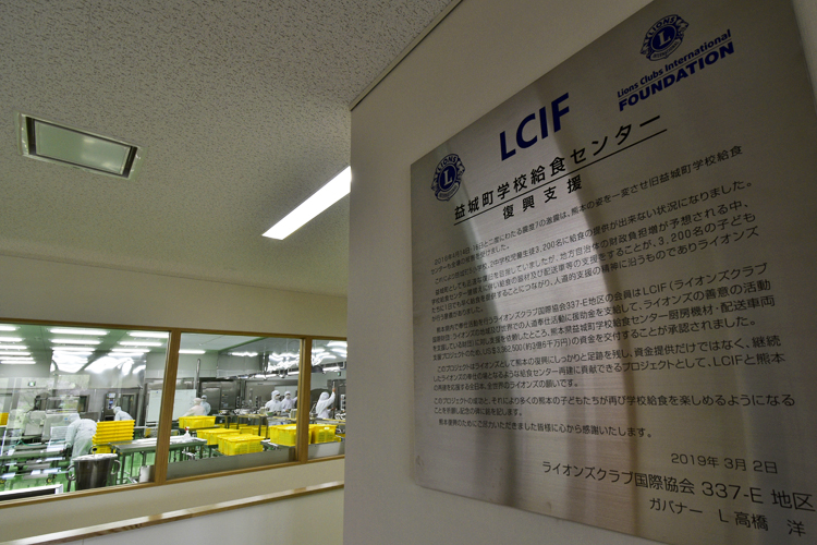 それから3年が経った19年4月10日、ライオンズクラブなどの支援により再建された益城町給食センターが本格稼働、町内全小中学校への給食提供が再開された。益城町には小学校5校、中学校2校があり、震災前は約3350食分の給食を町の給食センターで調理していた。が、旧センターは地震で建物全体が傾き、ボイラーが破損するなど壊滅的な打撃を受けた。そのため約1カ月間は給食を中止せざるを得ず、その後も簡易給食や弁当給食で急場をしのぎ、17年からは隣の熊本市に調理を委託していた。