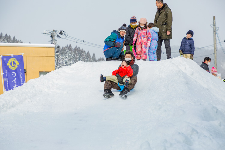 また、クラブでは参加団体と協力して道の駅の中庭にそり遊びのための雪山も作っている。冬は子どもたちにとって、なかなか外で遊べない退屈な季節。雪山では多くの子どもたちが時間を忘れて楽しんでいた。けがなどを防ぐのもメンバーの大事な仕事。雪山の上と下で常にメンバーが子どもたちを見守っていた。今年のように雪が少ない年は、遠方から雪を運んできている。