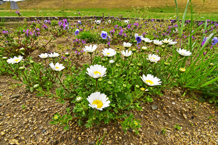 その後、棗田さんの知人に依頼して基本設計をしてもらい、島根県の斐伊川にあった水辺公園などを参考にしながら、クラブとしてのデザイン案を作成。それを元に国土交通省が約1億円を投じて公園を整備してくれ、03年4月に竣工しました。市民からの提案で、川を利用した公園を造ったのは中国地方で初のケースだったそうです。公園の規模は河川敷1万平方メートル、川の中州約2万6000平方メートルで、ここにショウブ1万本を始め、ベゴニアやサルビアなど1万2000本、計2万2000本の苗を、地元町内会や老人クラブ、幼稚園児らと共に植えました。
