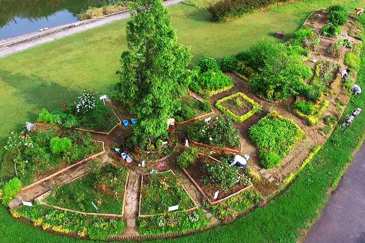 が、歳月が流れるにつれ、中心となってくださった方たちが徐々に高齢化するなどして、管理に関わる団体がいつしか5チームに減ってしまいました。これには、雑草との闘いを始めきつい作業が伴うことや、水害で花木が流失するなどの自然災害も影響しています。実は目玉の一つだった中州のショウブは、公園整備後ほどなくして洪水で根こそぎ流されてしまいました。昨年の西日本豪雨でも公園が完全に冠水し、その復旧に大きな労力を要しました。