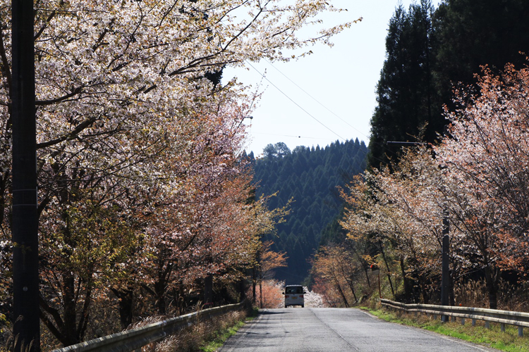 この曽於広域農道には10kmにわたってヤマザクラが植えられている。これは、鹿児島県・財部ライオンズクラブ(前畑浩一会長/22人)が2000年から03年にかけて植樹したものだ。その間、年300本〜350本を植樹しており、合計約1000本のヤマザクラが財部の春に花を添えている。