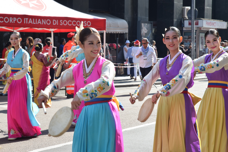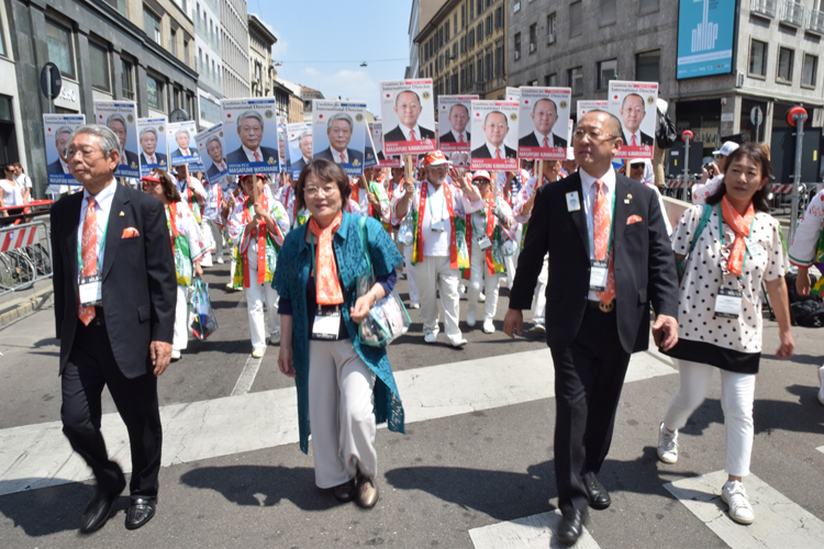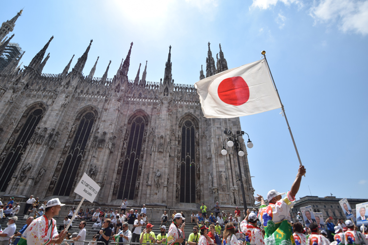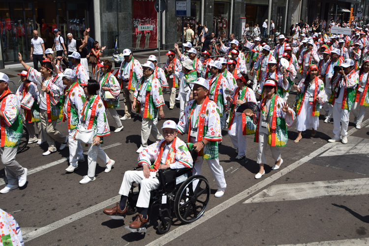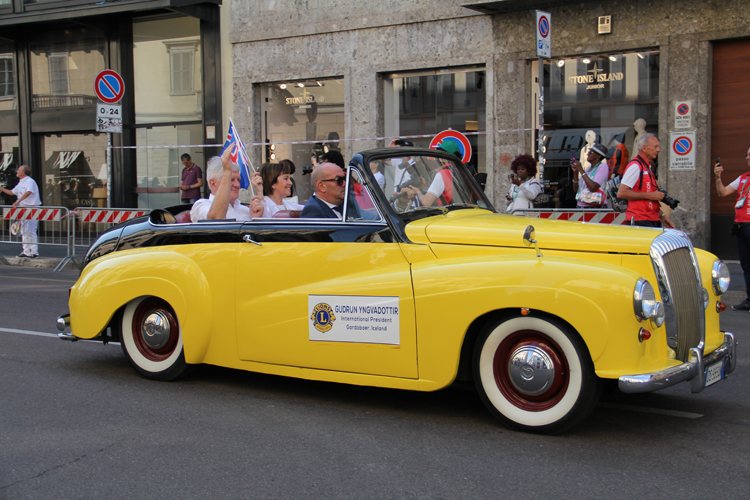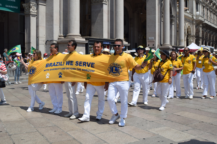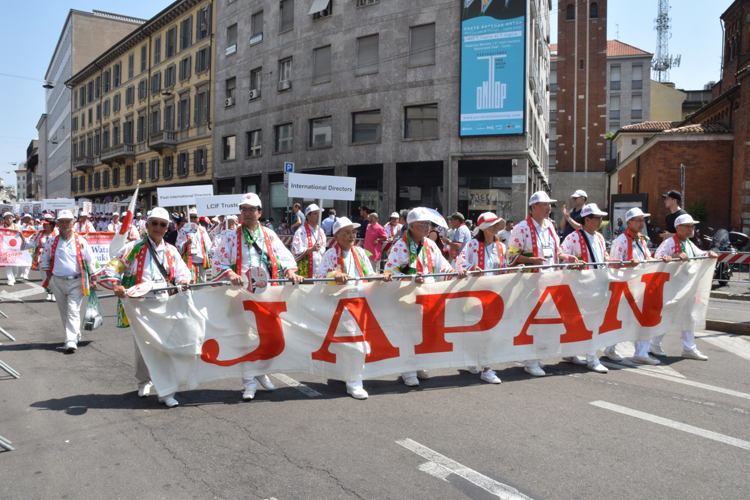 午前9時、国際大会の開幕を飾るインターナショナル・パレードがスタート。約200の国と地域から集まったライオンズ・メンバーが、ミラノ中心部、コルソ・ベネチアからミラノ大聖堂までの約1kmを行進した。ヨーロッパは6月下旬から異例の猛暑に見舞われており、この日晴天となったミラノは最高気温33度の予報で、朝から強い日差しが照りつける中でのパレードとなった。