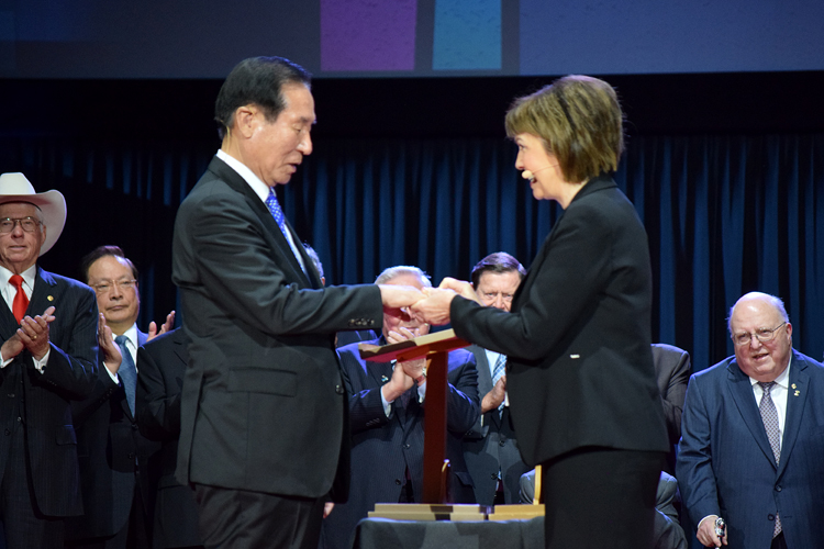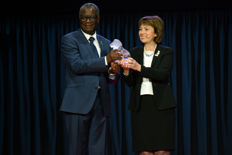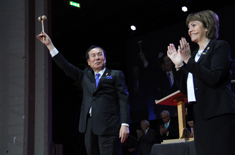 午前10時から、ミラノ国際大会を締めくくる最終日総会(閉会式)が開かれた。コンゴ民主共和の産婦人科医、社会活動家であり、ノーベル平和賞受賞者のデニス・ムクウェゲ医師に人道主義大賞が贈られ、ジュンヨル・チョイ新国際会長(韓国・釜山)が就任した。