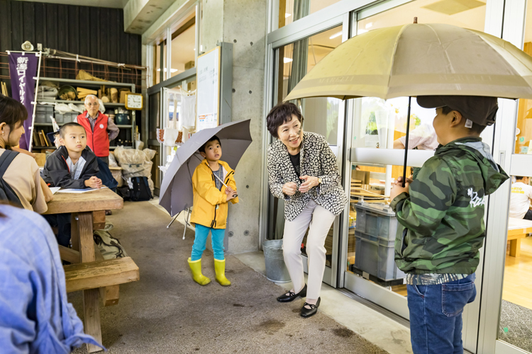 山登りに替わるプログラムとして、あらかじめ用意していたのは、大きなガラス温室と広大な屋外園地で植物を楽しめる新潟県立植物園の散策だったが、当日はたまたま近くの新津美術館で、高い人気を誇る「魔法の美術館」が開催中だったため、臨機応変に予定を変更。親子で体験型アートを楽しんでもらった。また、登山の前後に計画していた勾玉作り体験と「江戸しぐさ」の講義は、当初の予定通り実施した。