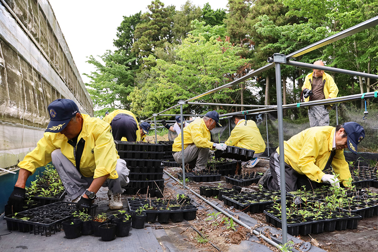 そんな中、2013年に種苗販売会社を経営する黒﨑一嘉さんがクラブに加わったのを機に、苗木育成に大きな進展が図られた。黒﨑さんは専門家の立場から作業の見直しを提案。苗の育成を畑から育苗ポットに切り替えて移植する手間を省き、更にビニールハウスを利用することで育成期間を1年半から半年に短縮した。またそれによって苗が軽量化されて植樹の際に一人で数本の苗を運べるようになり、作業効率も格段に良くなった。