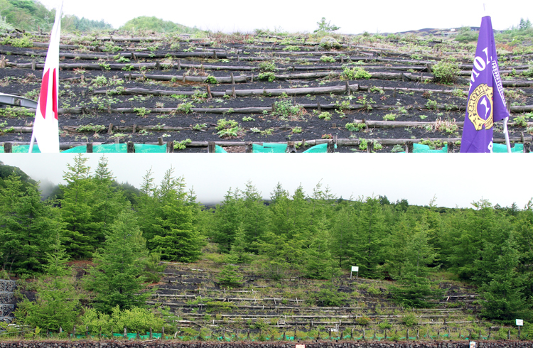 事業開始から29年にわたる歩みの中には、多くの困難があった。そもそも計画段階から、クラブの周辺には植樹によって緑の復元を目指す取り組みの実現性を疑問視する声もあった。開始から5年目には大規模な雪代が発生し、それまでに植えた苗木や、土留めに設置した丸太や杭のほとんどが流されてしまい、マスコミの批判にもさらされた。それでもクラブは諦めることなく植樹を続け、98年には県緑化功労賞を受賞。御殿場ライオンズクラブの後に続き、富士山緑化の取り組みは他の民間団体にも広がっていった。