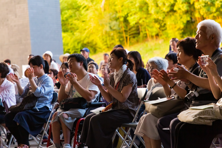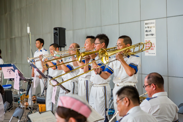 この日は途中で雨が降るアクシデント。屋根がない部分にも客席が置かれていたため、コンサートの途中で客席の場所を急きょ変更することになった。だが、ライオンズクラブのメンバーと音楽隊との呼び掛けで非常にスムーズに移動が完了。屋根の下に入りきれない人もいたが、雨が降っていることを気にもとめず、コンサートを楽しんでいた。