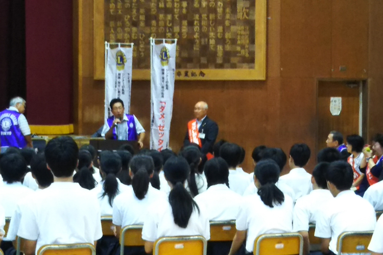 東京葛飾東ライオンズクラブ(54人)は9月24日(火)、葛飾区立新小岩中学校体育館で、1年生128人に対して薬物乱用防止教室を実施した。当クラブはこれまでも最大で1校550人の中学生を対象としたものなど、積極的に地元葛飾区の小中学校の児童・生徒、ご父兄を対象に薬物乱用防止教室を開催している。