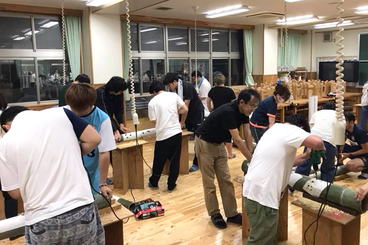 海も山もある良い所だけど、なんとなく中途半端。そんな玉名にもっと多くの人に訪れてもらいたいと8年前に始めたのが、「玉名燈師(あかし)」の活動です。きっかけは、「熊本市の『みずあかり』のような催しが玉名でも出来ないか?」という後輩からの相談でした。毎年10月に開かれる「熊本暮らし人まつり」の「みずあかり」は、ボランティアが作った竹燈籠を並べて夜を彩る灯りの祭典です。私の本業は水道設備業で、小さい頃からプラモデルやカービングが好きで物作りが得意だったので、出来る自信はありました。そして、町づくりへの思いを共有する仲間と話し合い、誰もが参加出来る市民参加型の祭にすること、長く続けるために補助金に頼らずに運営することを掲げて、実行組織である玉名燈師を立ち上げました。