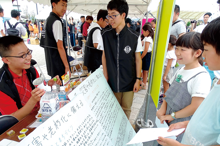 各ブースでは小学生を中心に大人も興味深そうに立ち止まり、レオたちの話に耳を傾けていた。風鈴づくりや浄水法など体験型のブースでは、子どもたちが真剣に取り組みつつ、レオたちと笑い合う場面も見られ、終始和気あいあいとした雰囲気。レオたちは予想を上回る人出に驚きつつも、混み合ってくると「誰か説明に入れる?」など声を掛け合い協力しながら、訪れる人々に真摯に向き合った。全ブースでスタンプを集めると信州産のフルーツがもらえるスタンプラリーも大好評だった。