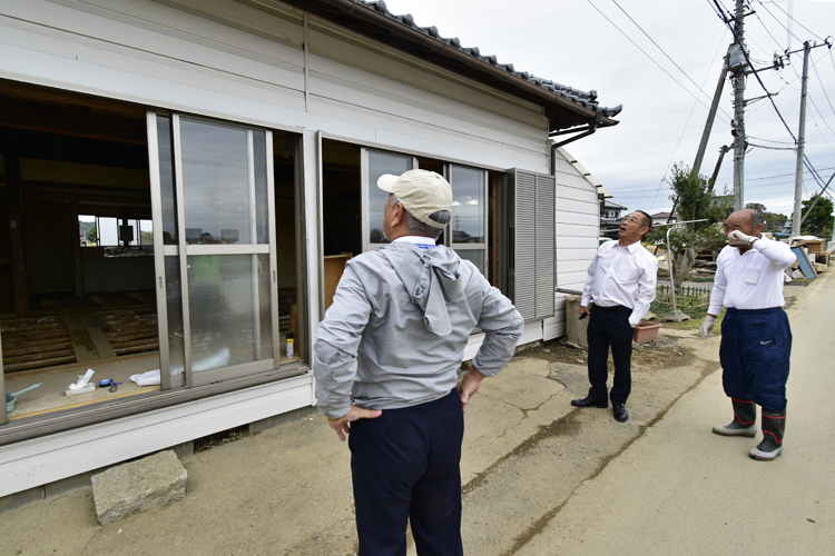 大髙ガバナーによると、飯富町、藤井町、岩根町など今回被害が出た一帯は那珂川と支流の藤井川や西田川に囲まれた低地で、これまでも何度か水害に見舞われてきたという。そのため、昔はそれぞれの家に避難用の船があったたほどで、大雨が降れば浸水する地域との認識は、被災地区の住民にも他の地域の市民にもあったと話す。ただ、今回の洪水は住民にとっても、過去の経験を超える想定外のもので、視察中に出会ったお年寄りの一人は、以前は自分の胸まで水がきたことがあったが、今回は背丈をはるかに超える水量だったと証言。国土地理院は水戸市北部の常磐自動車道水戸北インターチェンジ付近で浸水の深さが7.2mに達していたと推定しているが、これはビルの2階が水没し3階が床上浸水するのと同じレベルで、専門家は「過去の水害でもまれにしかない深さ」だと話している。