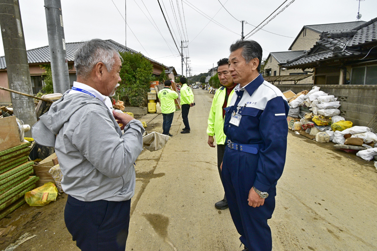 この他、茨城県では常陸大宮市、常陸太田市、大子町などで、那珂川や久慈川、更にはその支流が氾濫。浸水による住家被害は約3000棟に及んでいる。ライオンズクラブでは、国のポンプ車による排水作業が終わったエリアから支援活動に入り、15、16日には水戸市内や土浦、岩井、霞ケ浦などのライオンズクラブが現地に入り、被災家屋で泥出しや家具の運び出しなどの作業を行った。
