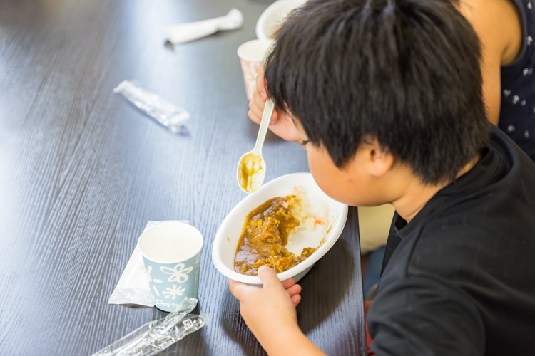 何度か開くうちに子どもたちとの距離も近づいてきた。メンバーに話しかける子どもも多い。開催する度に参加してくれる子どもの数も増えており、地域に着実に根付いてきている。一方で実施していく上で今後の課題として考えているのはメニューの問題だ。アレルギーなどの問題が少なく、大量に作りやすいことからカレーを選んでいるが、子どもたちからも他のメニューを求める声が出ている。