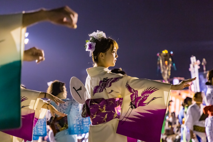 今年の日程は8月24日と25日。毎年、初日は企業などのチームが踊り、2日目は地元のチームが踊る。鶴崎臨海ライオンズクラブは2日目、25日の参加だ。最初は緊張していた様子の留学生たちも、踊りが始まってからは表情が変わる。この日のために練習してきたのが伝わってくる所作だ。毎年参加している留学生もおり、踊りも立派なものだ。わざわざ海外からその勇姿を見に来てくれる親御さんもいるという。留学生に負けじとメンバーも踊る。