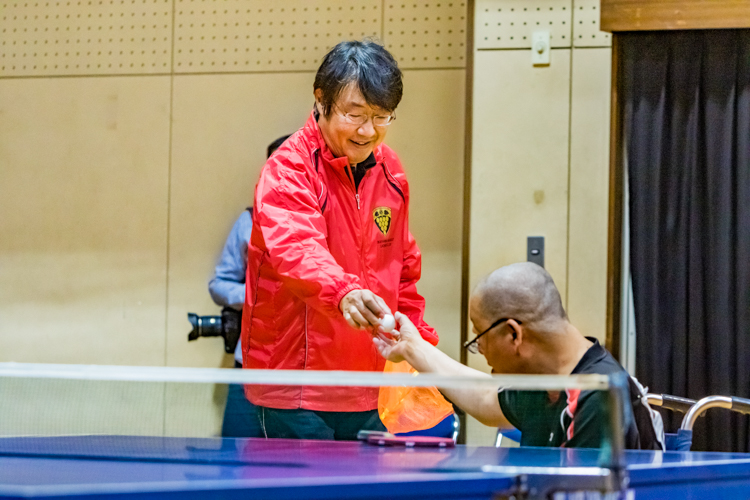 かつてこの障害者卓球大会は9月に実施されていたが、まだ気温が高いため、時期をずらした。卓球はわずかな風でも球の軌道が変わってしまうため、空調が入れられないのだ。それからは毎年10月に実施している。