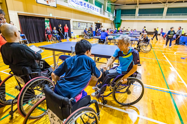 今年の参加者は約50人。選手の所属を見ると県外からの遠征も多い。中国地方、四国地方はもちろんのこと、京都や愛知からも参加している。今年はパラ卓球日本代表の海外遠征期間とかぶっていたため、代表選手は参加しなかったが、過去にはそうした選手も参加している。障がい者の卓球大会は数が少ないため、西日本の選手にとっては貴重な機会だという。日頃の練習の成果を出す真剣勝負の場だ。