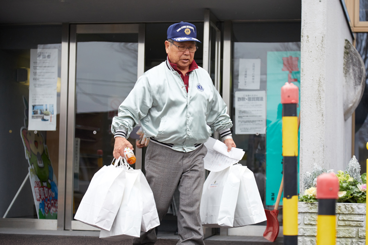 12月14日の午後1時、町内に点在する仮設住宅を訪問するために、食料品を詰めた紙袋を抱えたライオンズのメンバーが厚真町総合福祉センターを後にした。ここは厚真ライオンズクラブのメンバーが普段から集っている例会場で、地震直後に避難所の一つにもなった場所だ。