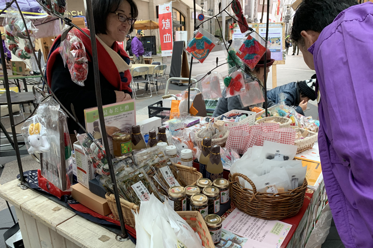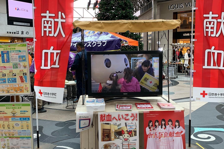 会場のドーム広場につながる高松丸亀町商店街には、香川県赤十字血液センターが運営している丸亀町献血ルーム「オリーブ」があるので、マルシェ会場内に献血推進PRブースも作り、商店街を通行する人々に献血への理解と協力を呼び掛けることにした。