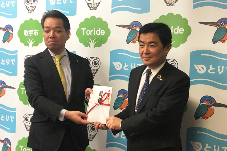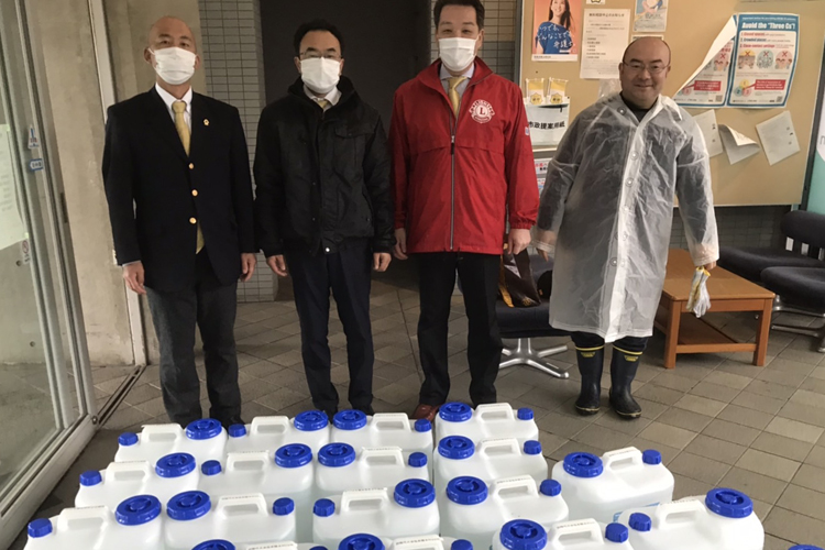 取手中央ライオンズクラブ(阿部直樹会長/78人)は4月13日、新型コロナウイルス感染拡大防止に役立ててもらおうと、取手市に次亜塩素酸水(じあえんそさんすい)2400Lを寄贈した。この次亜塩素酸水は、市内の幼稚園・保育所・小学校・中学校・高等学校・障害者施設、計60カ所へ配布される。
