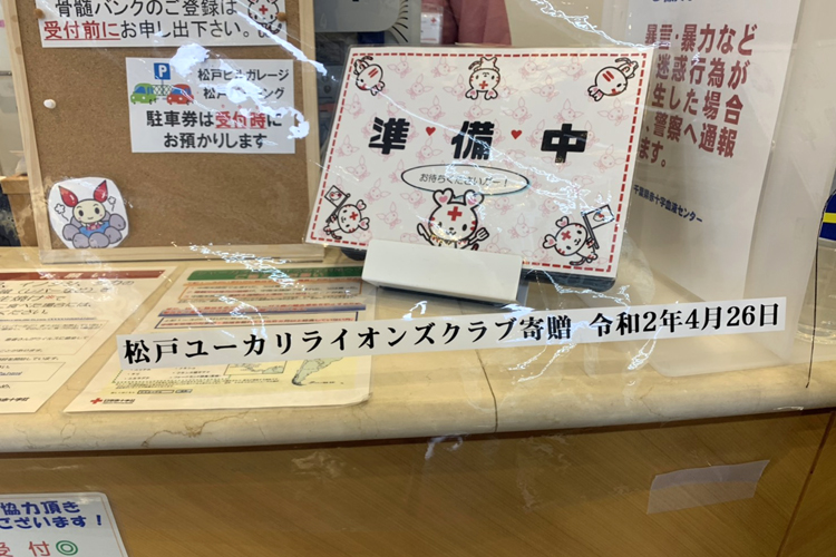 そうした中、松戸献血ルームから、飛沫感染防止用のビニールが入手出来ずに困っているとの連絡が入った。献血ルームでは感染防止のため、来場者に消毒を徹底してもらうなどの対策を講じているが、来訪者と対面するスタッフの皆さんは不安を感じながら日々の業務に当たっている。そのため、受付にビニールを設置することにしたものの、ビニールシートが品薄で手に入らないとのことだった。