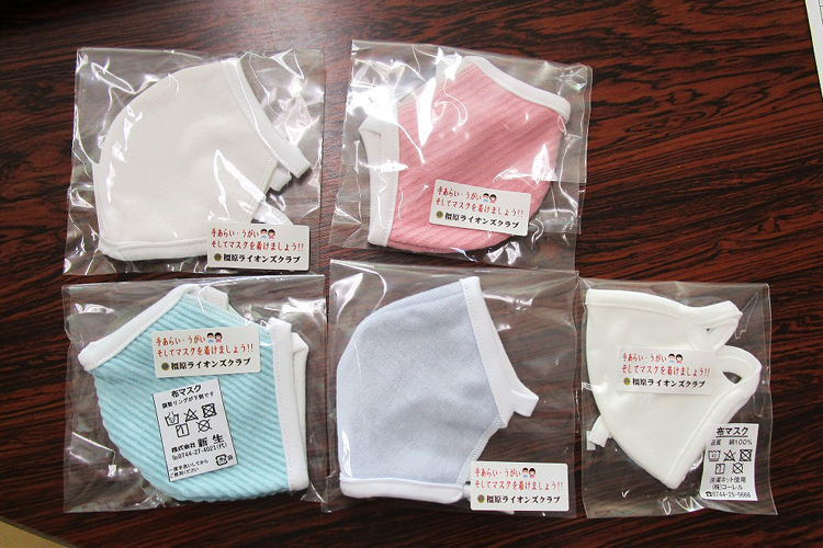 橿原ライオンズクラブ(中谷芳一会長/61人)は新型コロナウイルス感染拡大の影響で、3月以降は例会を始めクラブの活動が出来ない状態が続いていた。そうした中でもクラブに何か出来る奉仕事業はないかと協議したところ、全国的にマスクが不足し入手困難になっているというニュースを聞き、お子さんのいる家庭は非常にお困りなのではないかと思い至った。そこで子どもたちにマスクを、それも使い捨てのものではなく、繰り返し洗って使える布製のマスクを贈ってはどうかということになった。