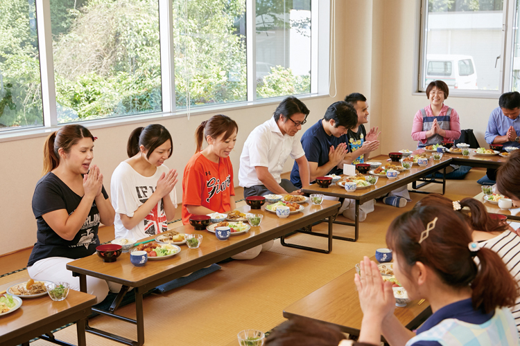 当日はライオンズのメンバーが作った昼食を皆で食べる。メンバーは毎回、地元の食材をメインに献立を考えて提供する。昼食時には、小学校から盲学校に通っている生徒から栽培観察学習の思い出が語られるなど楽しい時間となる。2017年に取材した際の生徒たちは皆卒業し、今は県内外の高齢者施設で元気に働いているという。