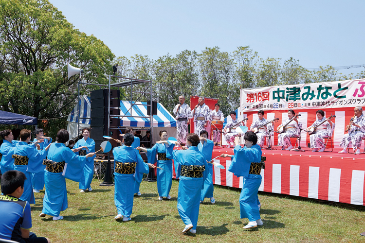 祭りは毎年4月最後の土日2日間にわたって行われる。メイン・イベントは市民グループや子どもたちによる踊りや音楽、伝統芸能のステージと、ライオンズ・メンバーが中津名物の唐揚げや焼き鳥、うどんなどの店を出す「美味いもん市」、そして港を舞台にした祭りならではの乗船体験だ。