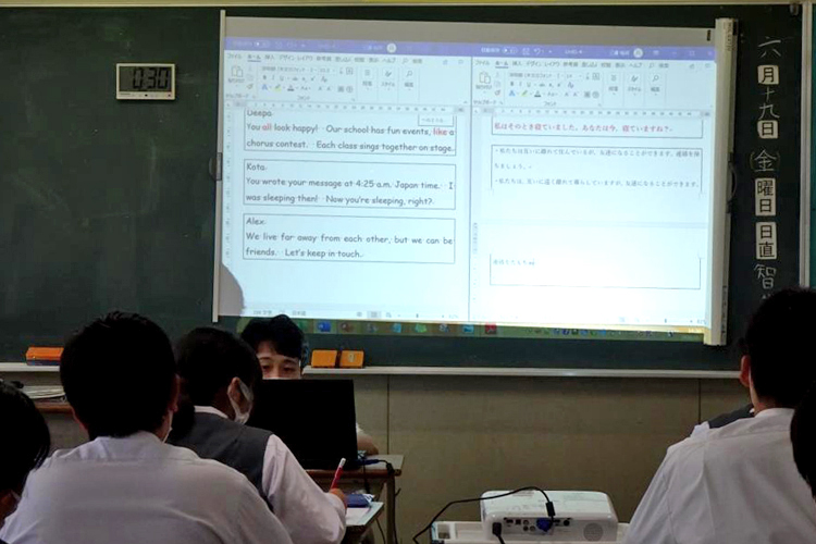 「寄贈頂いたプロジェクターにより、大きな画面で画像やグラフなどを見ながら分かりやすく授業を受けることが出来ます。気仙沼の未来、宮城の未来、日本の未来を担う一員として、皆様のご厚意に応えられますよう、今出来ることに精いっぱい取り組んでまいりたいと思います」